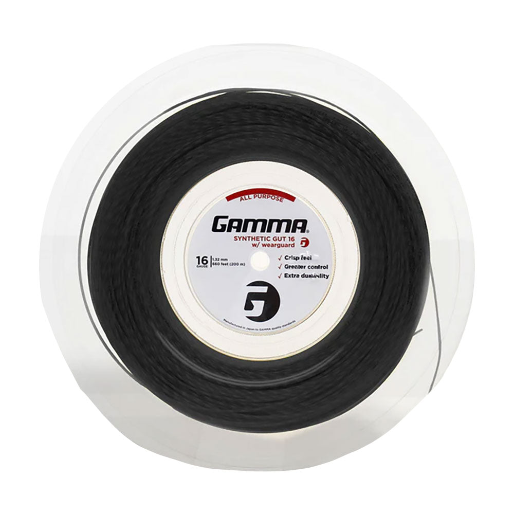 The Gamma Wearguard 16g Synthetic Gut String Reel is a solid choice for players who want durability without giving up feel. Its Wearguard technology wraps the string for extra toughness, helping reduce fraying and extend string life. The 16-gauge thickness gives a nice mix of control, power, and comfort—great for all-around play.