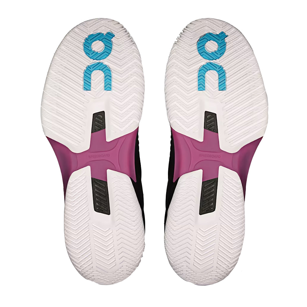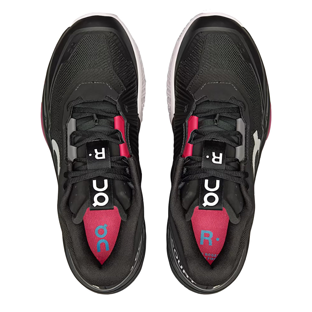 The On The Roger Pro Fire Mens Tennis Shoe is engineered for competitive players who demand explosive acceleration, stable support, and reliable traction during hard court play. Its innovative Speedboard technology enhances energy return and propels quick forward movement while maintaining natural flexibility for responsive footwork. The shoe features reinforced abrasion zones and a durable outsole pattern that deliver dependable grip and long lasting wear through intense lateral cuts and slides. Cushioned heel and forefoot elements provide all day comfort without sacrificing court feel or responsiveness. Sleek design details and performance materials combine to make this shoe as stylish as it is functional for high intensity match play.
