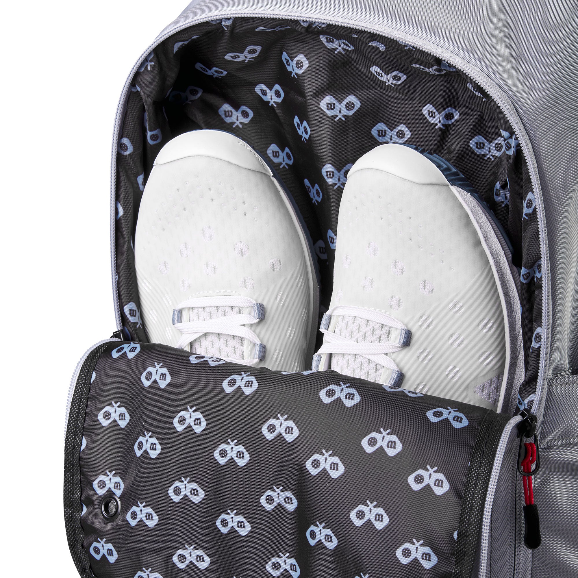 The Wilson Pickleball Backpack is a must-have for any pickleball enthusiast looking for a perfect combination of style, functionality, and convenience. This backpack is thoughtfully designed to cater to the specific needs of pickleball players, featuring a dedicated paddle compartment that securely fits multiple paddles, protecting them from damage and the elements. Additionally, it boasts a spacious main compartment, perfect for storing essentials like balls, water bottles, and personal items. The backpack is crafted from durable, high-quality materials, ensuring longevity and resistance to wear and tear. Comfort is also a key focus, with padded shoulder straps and a ventilated back panel providing ease of carrying, especially during longer walks to the court. The sleek, modern design, complete with the iconic Wilson logo, adds a touch of professional flair.