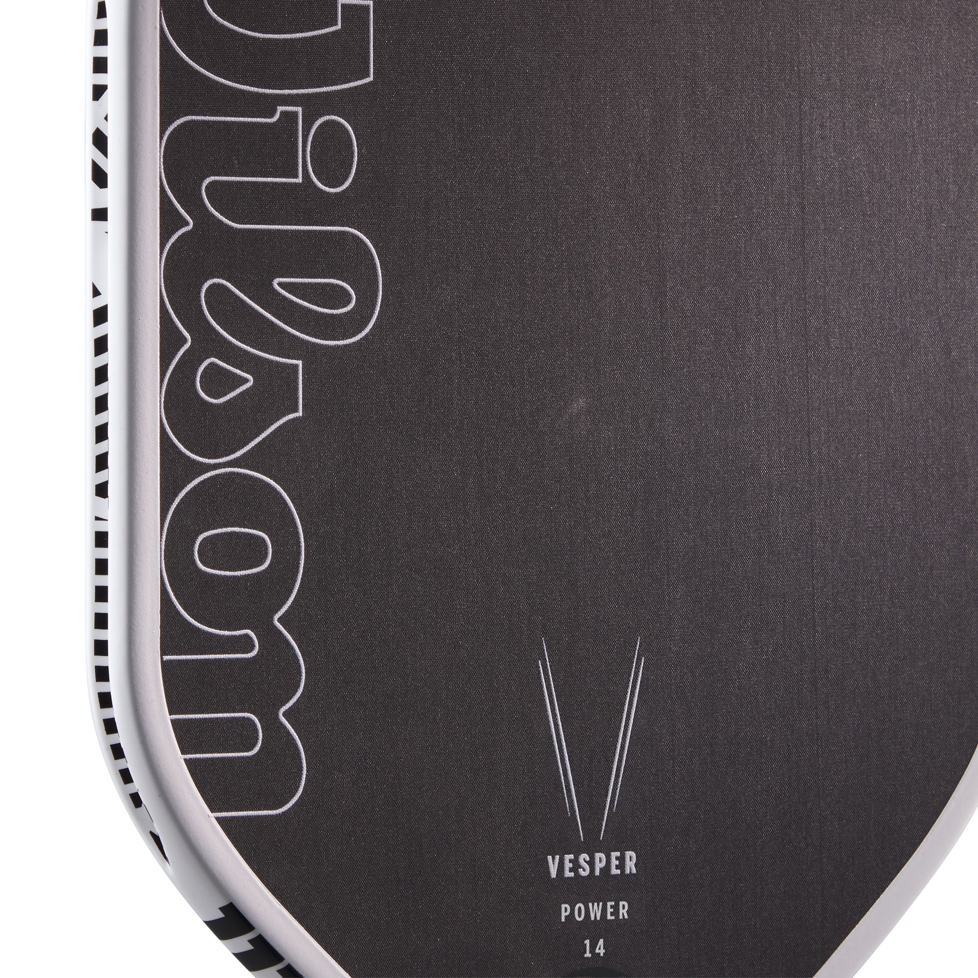 The Wilson Vesper Power 14 paddle is built for players who crave explosive power and quick-hitting versatility. Its 14mm core and hybrid carbon-fiberglass face deliver fast, lively ball speed with plenty of bite for spin-loaded shots. The edgeless design and open-throat construction enhance aerodynamics, helping you swing faster and control the court. A foam perimeter adds stability and enlarges the sweet spot, rewarding precision while still giving you that electric pop. Sleek and aggressive, this paddle is made for players who want to play big and bold.