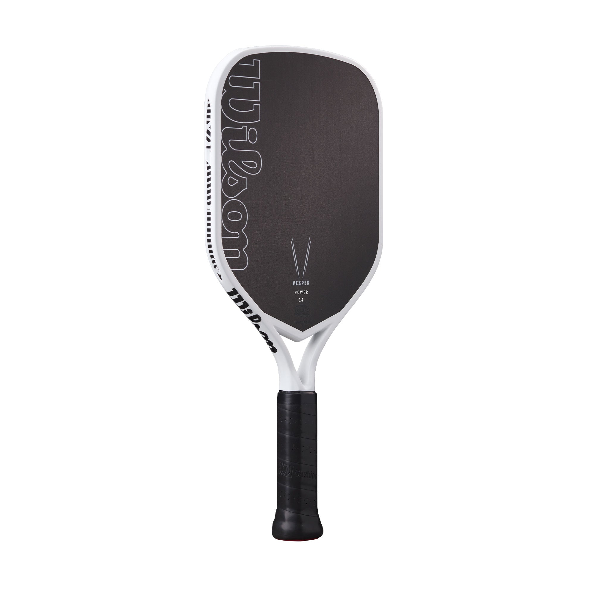 The Wilson Vesper Power 14 paddle is built for players who crave explosive power and quick-hitting versatility. Its 14mm core and hybrid carbon-fiberglass face deliver fast, lively ball speed with plenty of bite for spin-loaded shots. The edgeless design and open-throat construction enhance aerodynamics, helping you swing faster and control the court. A foam perimeter adds stability and enlarges the sweet spot, rewarding precision while still giving you that electric pop. Sleek and aggressive, this paddle is made for players who want to play big and bold.