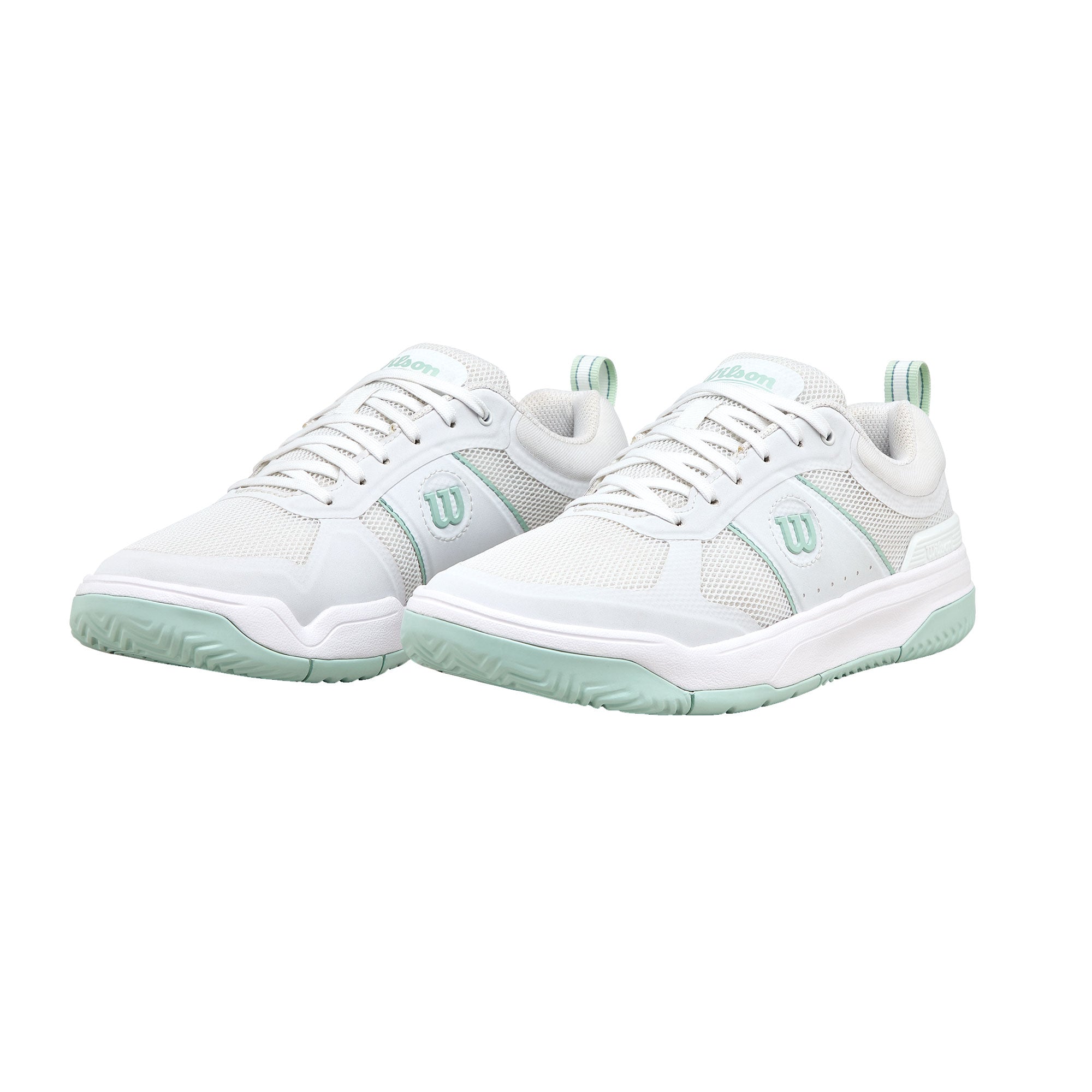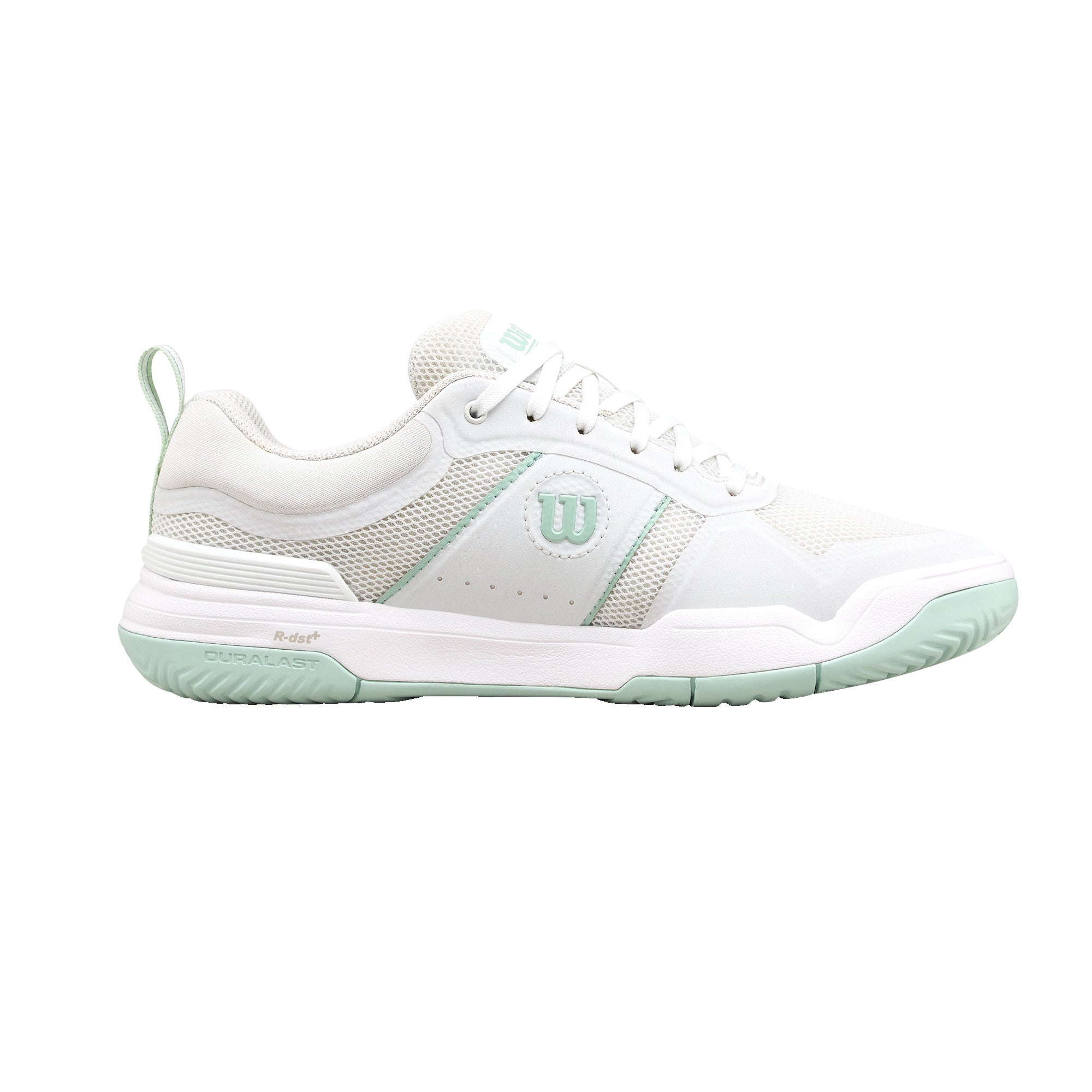 Introducing the New 2025 Wilson Pickle Pro Women's Pickleball Shoes, tailor-made to enhance agility and comfort on the pickleball court. Engineered with advanced lightweight materials, these shoes feature a supportive synthetic upper and Wilson's innovative Pro-Feel technology, which offers superior responsiveness and stability during quick pivots and lateral movements. The midsole is crafted with R-DST+ technology for excellent cushioning and rebound, optimizing your energy use throughout the game. Equipped with a non-marking Duralast outsole for exceptional grip and durability, the Pickle Pro shoes are built to help you excel in every match.